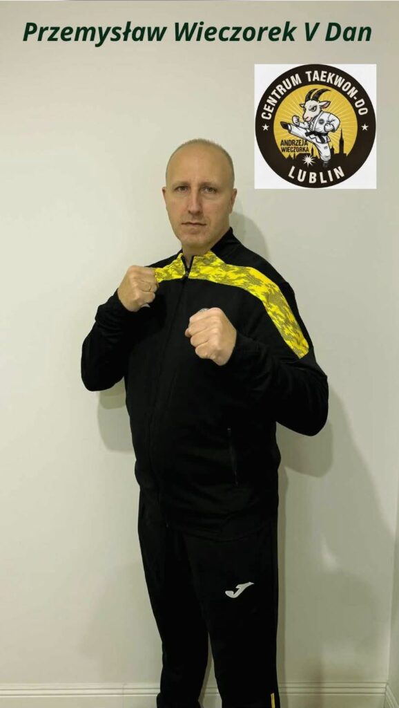 Nazywam się Andrzej Wieczorek i jestem instruktorem Polskiego Związku Taekwon-do. Ale od początku… Z Taekwon-do jestem związany już 27 lat. Zafascynowany sztukami walk widzianych w filmach i zapatrzony w starszego brata, który również jest trenerem Taekwon-do, pomyślałem to jest to, ja też chcę! No i wszystko się zaczęło. Zapisałem się do najstarszego w Polsce klubu Taekwon-do (Lubelskiego Sportowego Klubu Taekwon-do), którego założycielem i głównym szkoleniowcem jest Wielki Mistrz Tadeusz Łoboda IX Dan. W tym klubie kiedyś trenowali najlepsi, w związku z tym było od kogo czerpać wiedzę. We wspomnianym klubie byłem zawodnikiem, następnie przez 12 lat byłem jednym z instruktorów. Oprócz tego jestem Sędzią Polskiego Związku Taekwon-do klasy C. Posiadam również uprawnienia instruktorskie TKD TIGERS programu opracowanego do nauki Taekwon-do dzieci w wieku przedszkolnym. Obecnie w moich sekcjach trenuje blisko 130 adeptów. Organizuję także półkolonie sportowe oraz obozy. Staram się zarażać młodzież swoją pasją. Moich adeptów uczę sztuki samoobrony, ale również zdrowego stylu życia, determinacji, wiary w siebie i wytrwałości w dążeniu do postawionych sobie celów. Jak zawsze powtarzam” Taekwon-do to nie tylko Sztuka walki to również styl życia”.